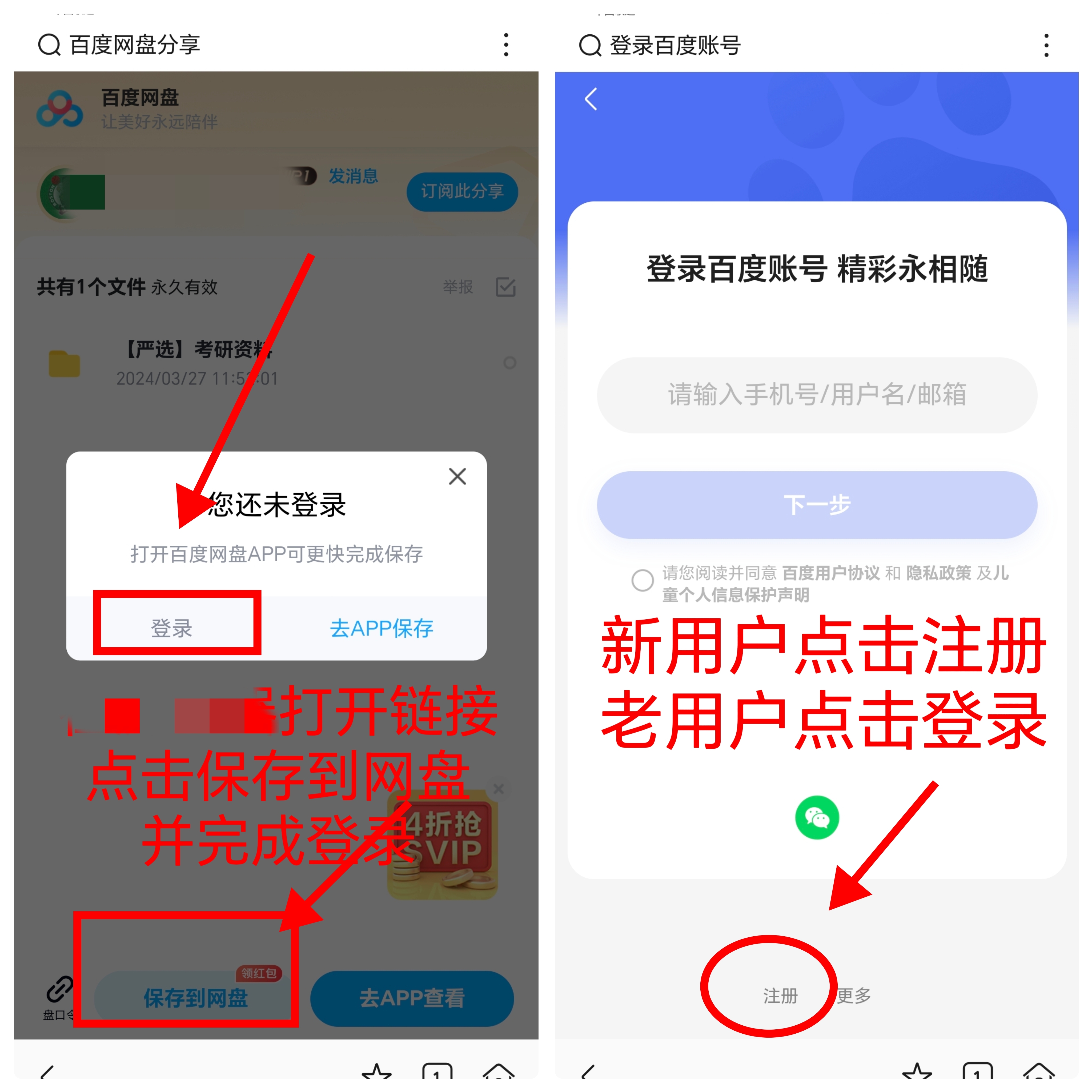 用户如何根据我提供的网盘链接和口令保存想要的资料呢?请看以下说明,一定要按说明来操作 :
